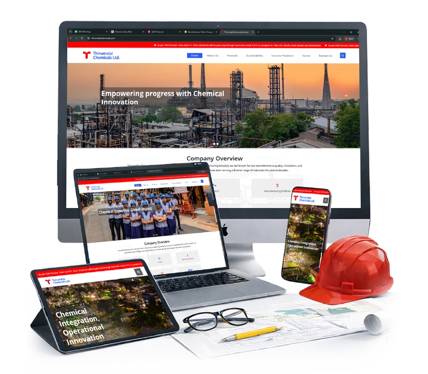 Corporate website development for a chemical manufacturing company with a focus on responsive layout, structured content and professional digital presence.